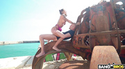 Смуглая красотка с роскошной грудью превращает пляж в арену похоти: её полуобнажённое тело манит к греху, а дерзкий взгляд обещает ночь безумной страсти. Она срывает верх купальника, дразня силиконовыми прелестями, и с жадностью впускает в себя твёрдый член пикапера прямо на глазах у всех. Камера ловит каждый стон, когда её ротик и влажная киска наполняются волнами экстаза. Не пропусти этот откровенный марафон — тебя ждёт взрыв эмоций и желание большего!