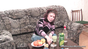 Кудрявый парень напоил зрелую милфу, уломав на секс. Жадно заглотив его член, она пускала слюни, кайфуя от глубокого орала. Раздвинув ноги, стонала, пока ствол входил в киску по самую матку. Сперма брызнула на её лицо, и она смаковала, дрожа от оргазма. Камера ловила её липкие щёки и хриплые крики. Похоть пылала, пока экстаз захлёстывал её тело. Красавица растворилась в наслаждении.
